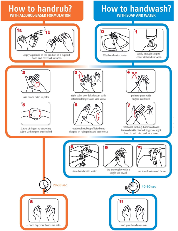 - Applying an alcohol-based handrub/ hand sanitizer to the surface of hands
